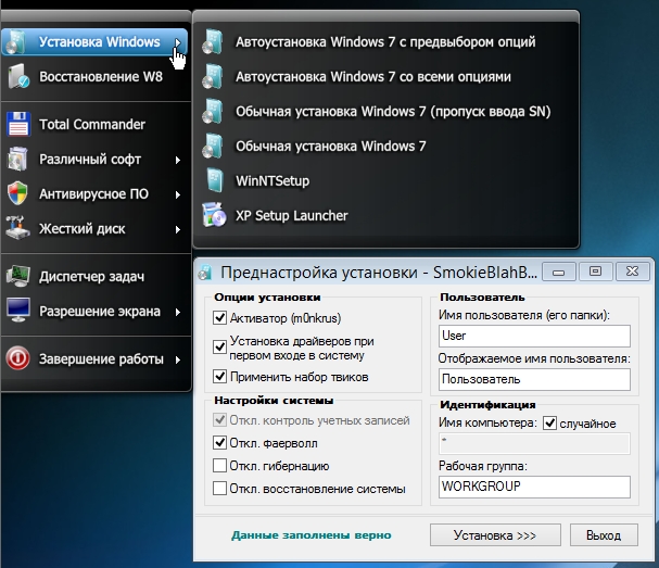 WinPE на основе Windows 8 быстрее (где-то на 30-40%) распаковывает install.wim Windows 7 в отличие от "родного" загрузчика, и поэтому я решил сделать из неё загрузчик для Windows 7. В него входят различные программы для восстановления работы ОС, разметки диска и т.д. |