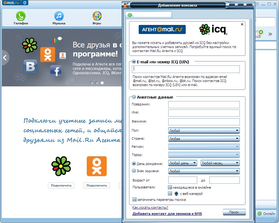 ![]() Версия программы: 6.0 Build 5650 Последняя Версия программы: 6.0 Build 5650 Язык интерфейса: Multi/Rus Лечение: не требуется (freeware) Системные требования: Windows® XP/Vista/7 Описание: Mail.Ru Агент — это самая популярная российская программа для общения онлайн. Сегодня Mail.Ru Агентом пользуются более 16 миллионов человек в мире, одновременно в сети находятся более 2 миллионов человек. Mail.Ru Агент - это голосовые и видеозвонки, обмен мгновенными сообщениями, бесплатные SMS, поддержка протокола ICQ, сервис микроблоггинга и многое другое, чтобы всегда быть на связи со своими старыми друзьями и завести новые знакомства. Подключите в Агент все социальные сети и мессенджеры, которыми пользуетесь: Одноклассники, ICQ, ВКонтакте, Jabber и др. Mail.Ru Агент откроет вам широкие возможности для интересного и эмоционального общения! Что нового: