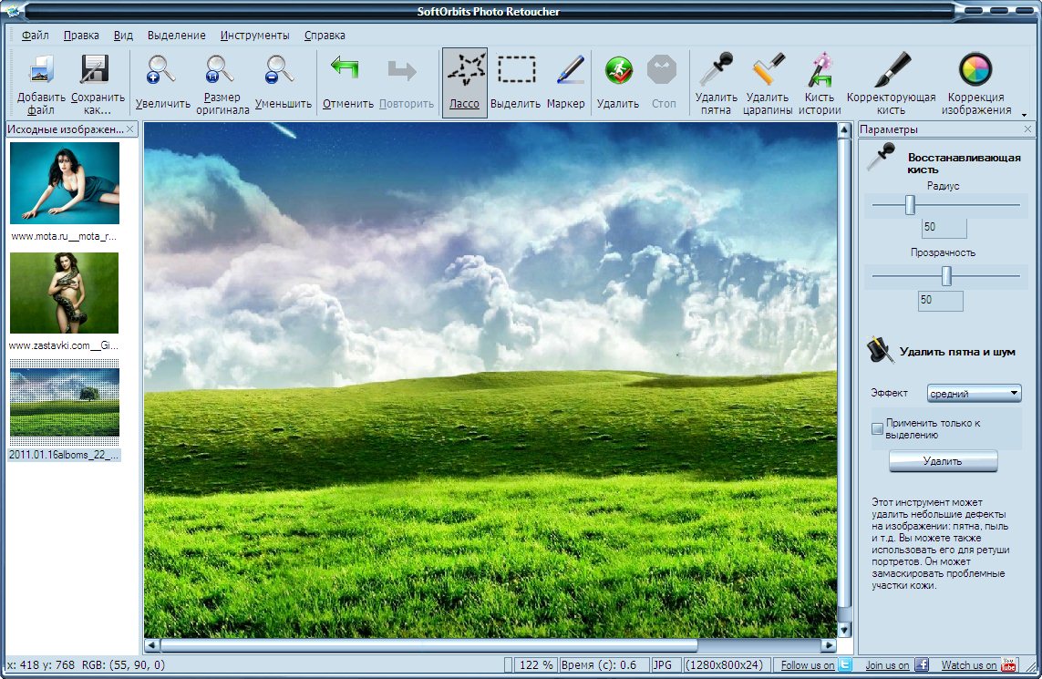 Реставрируйте ваши старые фотографии, удаляйте нежелательные объекты или подкрасьте фотографию для того, чтобы получить прекрасную картинку из обычного снимка. SoftOrbits Photo Retoucher может усовершенствовать ваши фотографии так, что вам захочется поставить их в рамку и повесить на стену. Название программы: SoftOrbits Photo Retoucher | |